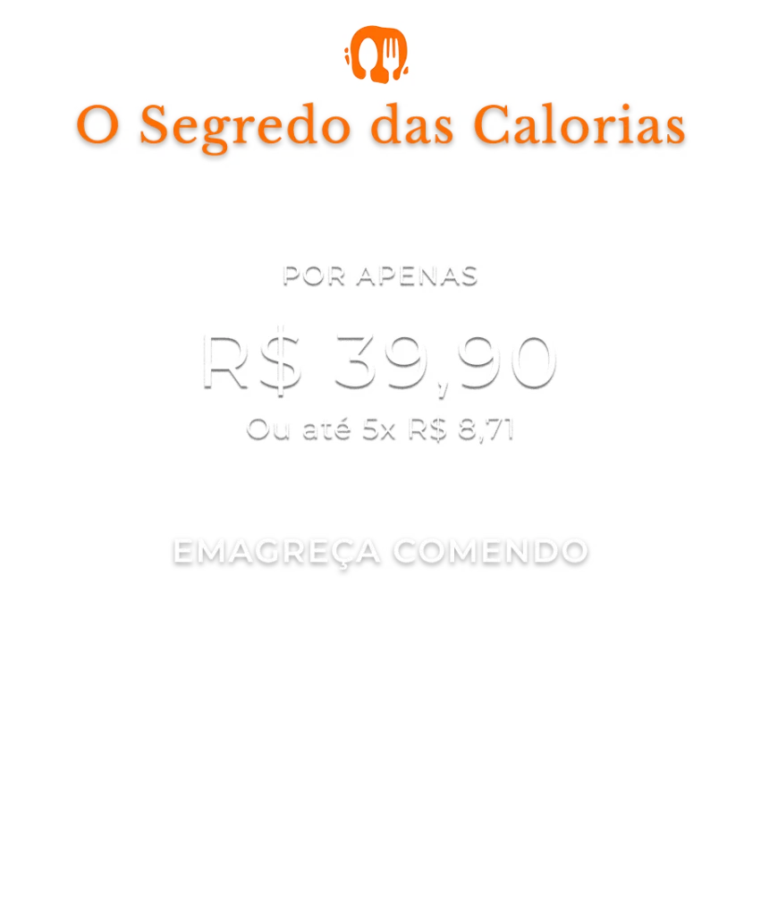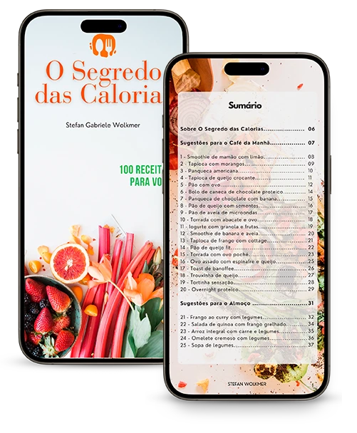 O Segredo das Calorias é um guia de emagrecimento em formato digital que reúne 100 receitas, do café da manhã ao jantar, incluindo lanches e sobremesas, todas com as calorias calculadas.